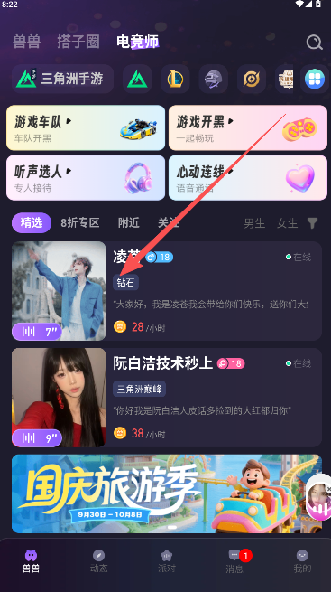2、游戏开黑陪玩页,会为你推送一些精选的高手陪玩。