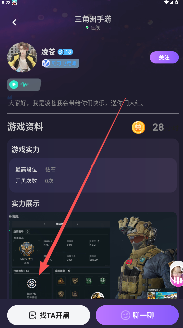 3、查看他的详细资料介绍,考虑是否开黑。