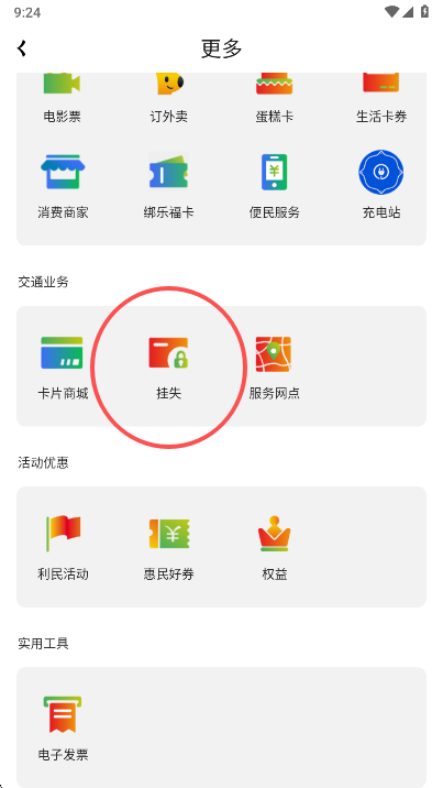 2、然后找到交通业务,下面有个挂失,在这里进行挂失就可以了