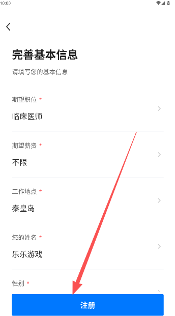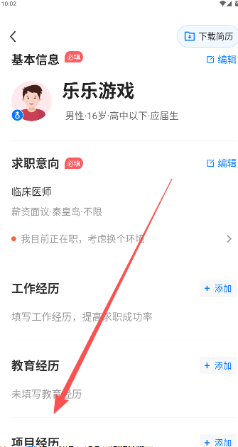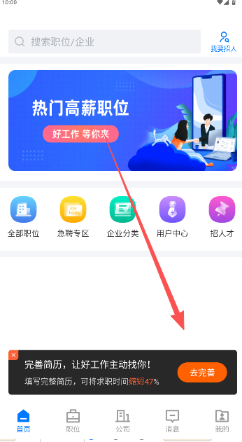 6、提交注册后进入首页,按提示框内的说明完善简历部分。