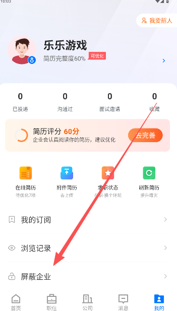 1、迁安人才网屏蔽企业,可以在我的信息栏中选择底部的屏蔽企业功能。