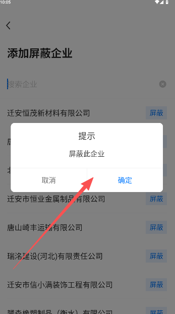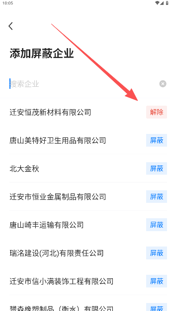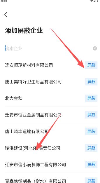3、搜索企业名称,或是按平台所给出的企业大数据进行屏蔽操作。