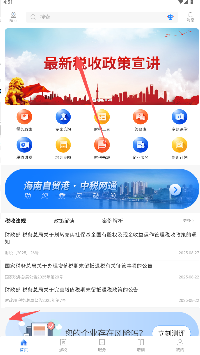 2、首页,查看最新税务宣讲政策,了解历年来的税务政策变化趋势走向。