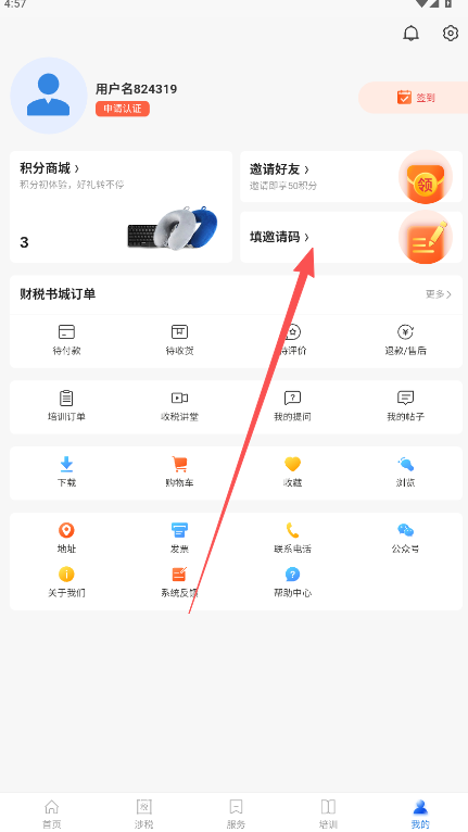 1、中税网通积分奖励最简单的获得方法,就是邀请码获得。