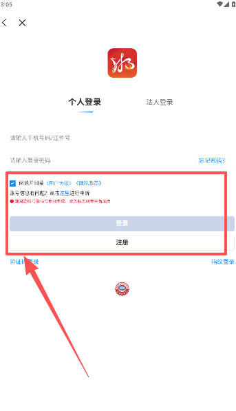 2、以个人或是法人的身份登录进入。
