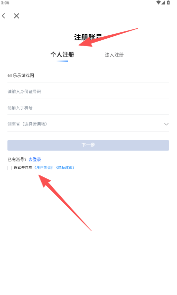 3、新用户如果是首次使用,请先完成账号的注册。
