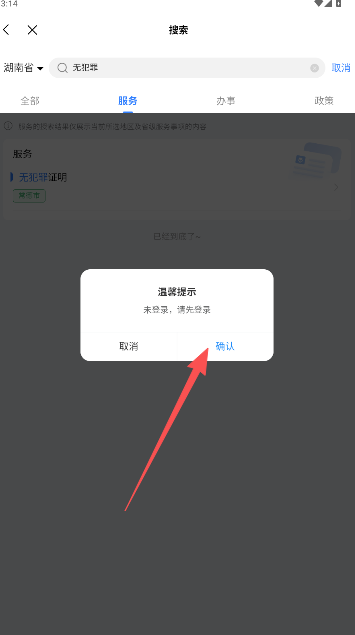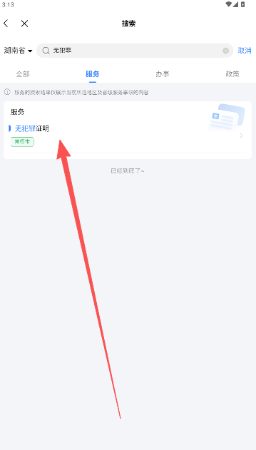 2、点击当前页面的无犯罪服务项。