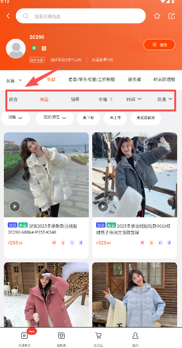 4、按条件筛选,选择你需要的女装/男装货源,按照他们的款式来挑。