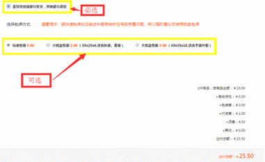 第六步:选择支付方式、缺货处理方式、包装方式,点击“提交订单”;