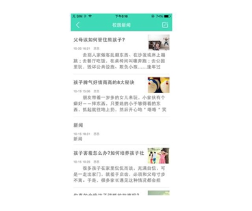 在幼儿园中点击校园新闻图标,可进入新闻标题与简介列表页面。点击右上角编辑按钮,可以编辑校园新闻。