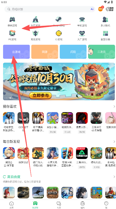 2、玩家们首次进入如果不太清楚玩什么类型的游戏,不妨在找游戏界面中,按照游戏属性分类选择你感兴趣的题材,参与游玩全程。