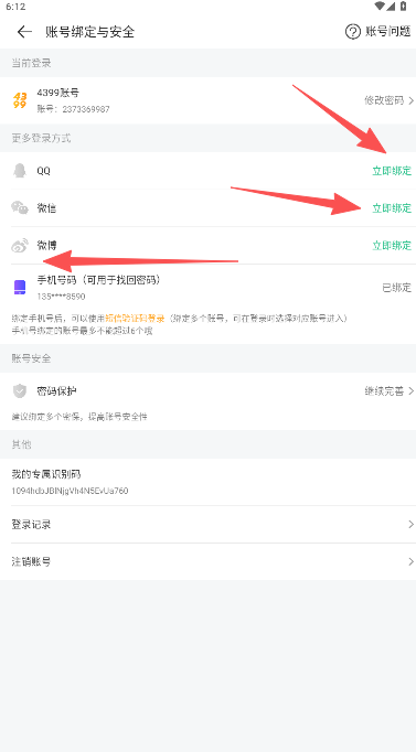 2、在该栏目内,可重新选择新的绑定方式,比如QQ、微信、微博等方式,完成账号的绑定和登录操作。