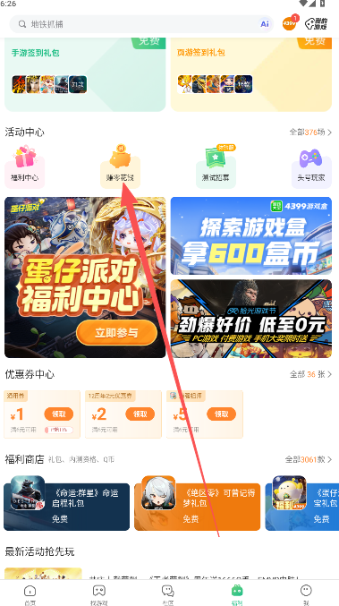 1、点击盒子福利版块,在福利中心列表栏选择赚零花钱。