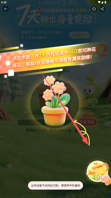 3、点击水壶,在7天内签到完成指定浇水次数,即可获得专属的现金收益和其他奖励。