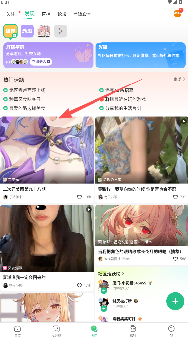 1、点击发现页专栏,进入一个你感兴趣的论坛话题参与。