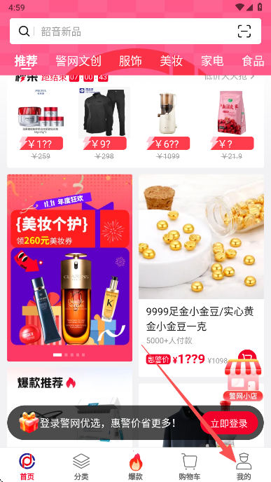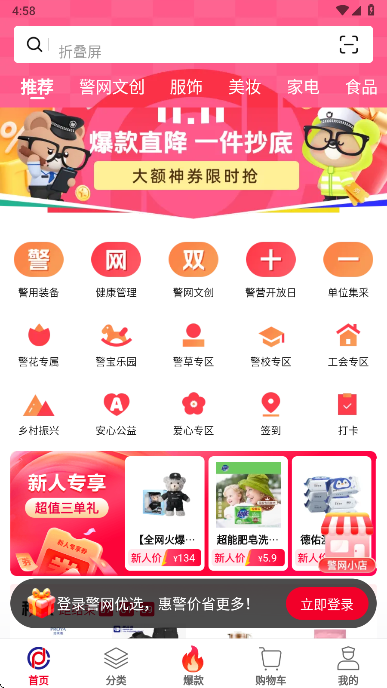 1、在本站下载安装警网优选app打开进入首页,可以看到各类商品信息