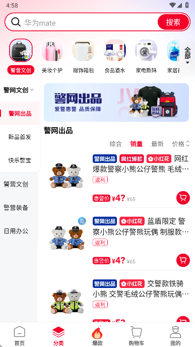 2、点击分类,您可以直接浏览到警网优选app为您提供到分类物品
