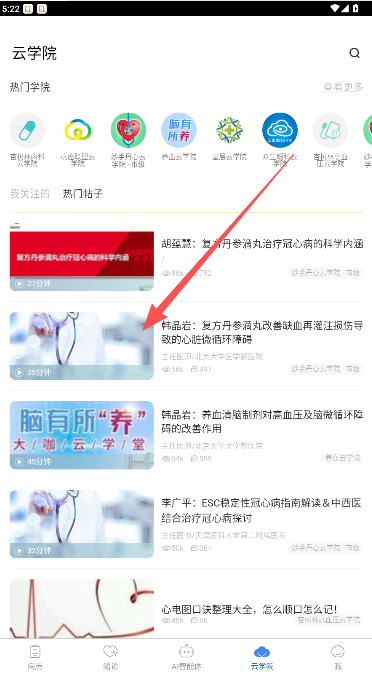 5、想要更好的提升自身医学知识水平能力,请在云学院中查看各项,具体就不一一阐述了,大家自行参与体验吧。