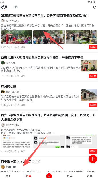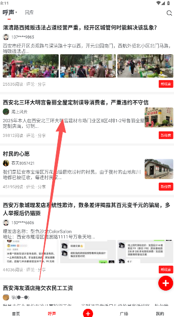 1、在华商头条手机版呼声版块,点击打开发帖内容。