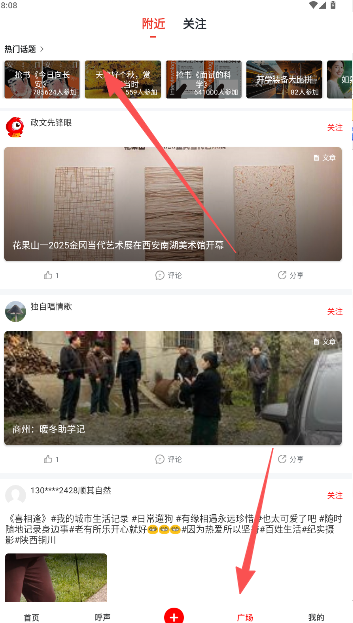 6、广场,主要根据用户所在位置推送,一些附近的新鲜事活动,或是一些近期的热门话题度内容。