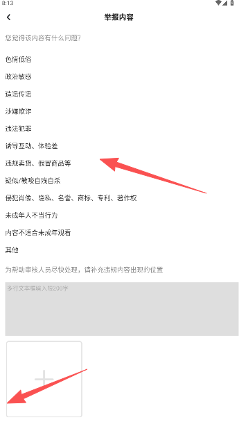 3、举报内容说明要记得选择对应的,添加图文更好。
