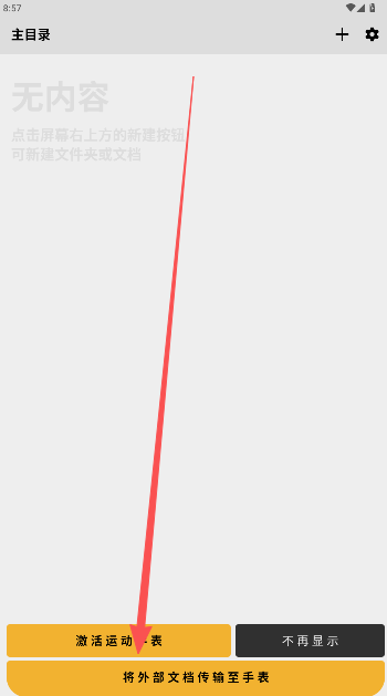 点击主页下方的“将外部文档传输至手表“按钮,在设备存储内选择要传输的文档
