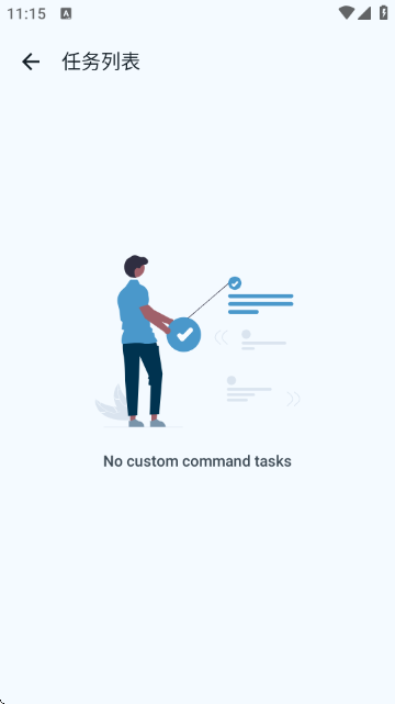 点击右上角任务列表图标,可查看自定义命令任务(初始无任务显示“No custom command tasks”)。