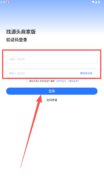 2、使用手机号短信验证码进入,或是直接使用找源头原版账户登录。