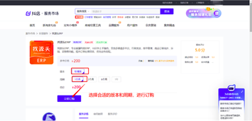 4、在服务市场购买页面,选择合适的版本和周期,点击立即订购。