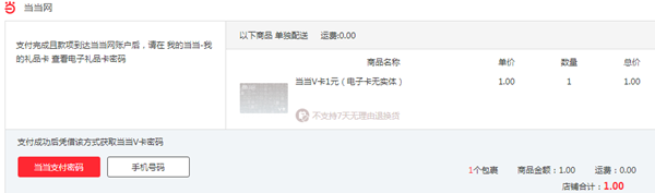 1、在当当V卡购买界面,选择当当支付密或手机号码的方式获得V卡激活资格。