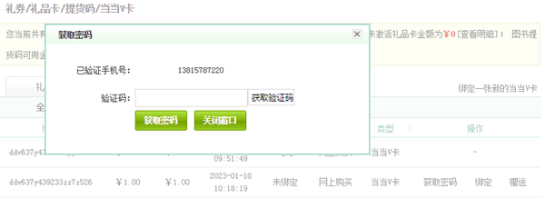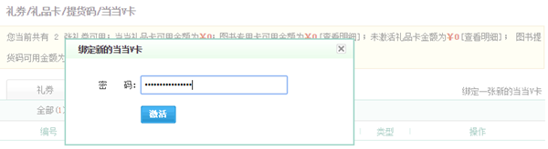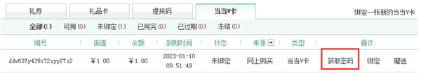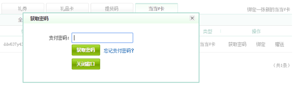 2、当当V卡购买成功后,在我的当当礼品卡页面内,点击获取v卡的使用密码。