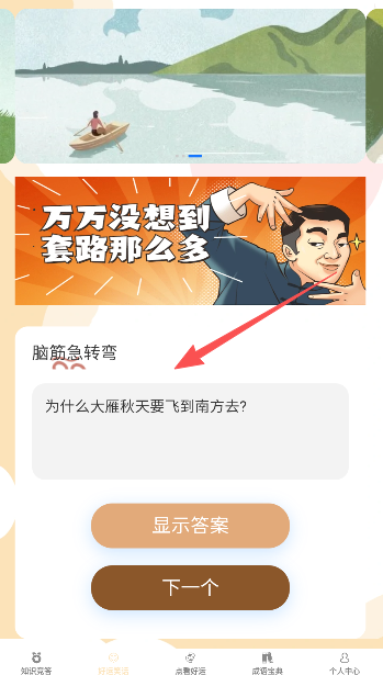 1、答题好运来答案查看主要在好运笑话版块。
