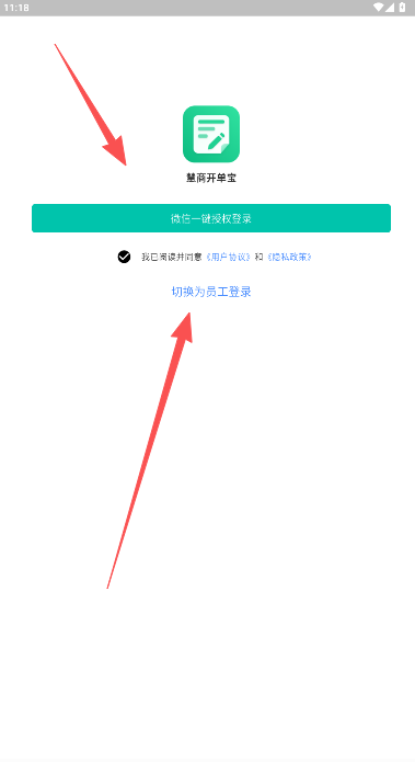 1、慧商开单宝APP的登录方式分为微信登录和员工身份登录两种。