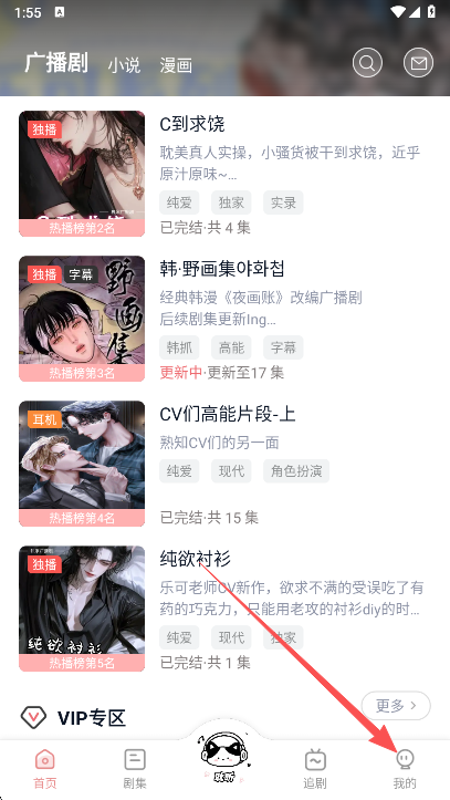 2、首页页面汇集了很多的广播剧、视频以及小说漫画等。
