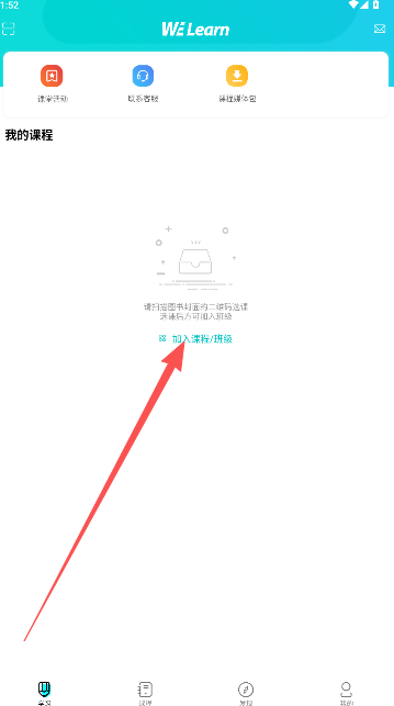 3、注册成功后,来首使用界面学习版块,点击加入课程/班级。