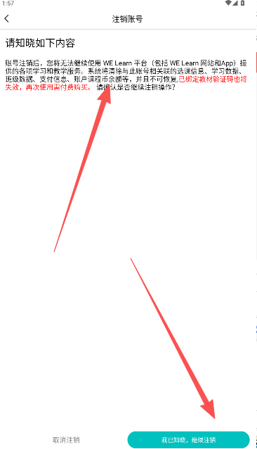 3、确认知晓注销账号内容说明提示,点击我已知晓,确认注销,完成此项操作。