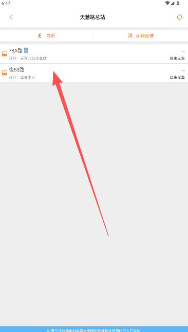 3、进入详情页面,可以查看详细发车情况,当前显示未发车,也就是说明公交还在起点站,或是上一辆已经开走在路上,如需乘坐还要耐心等待。