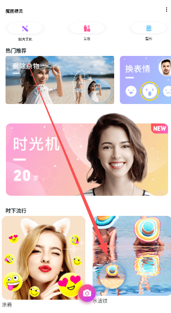 1、进入魔图精灵使用界面,点击水波纹。