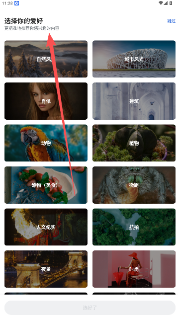 4、完成上述步骤之后,开始挑选你所感兴趣的摄像话题爱好类型。
