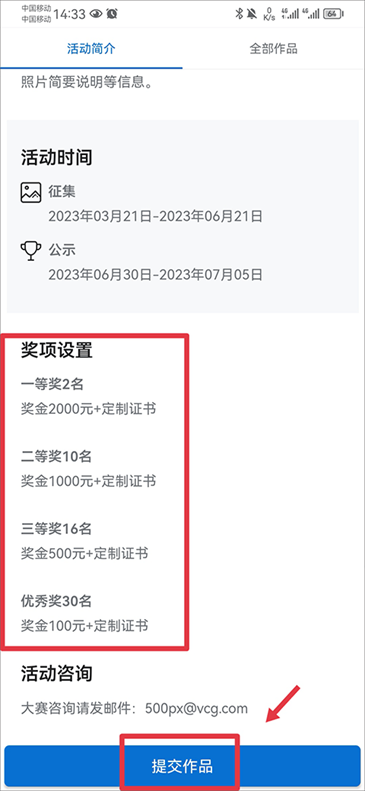 3、每个活动的投稿要求、内容以及奖励都不同,用户按照要求提交作品后等待结果即可,若成功获得获奖名单则可以收获对应奖品或奖金的奖励。