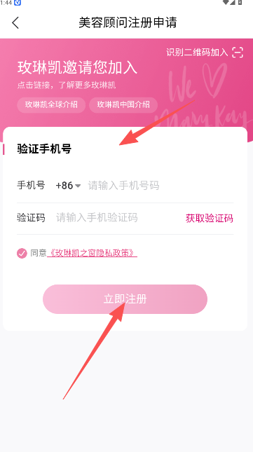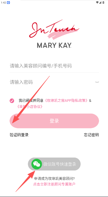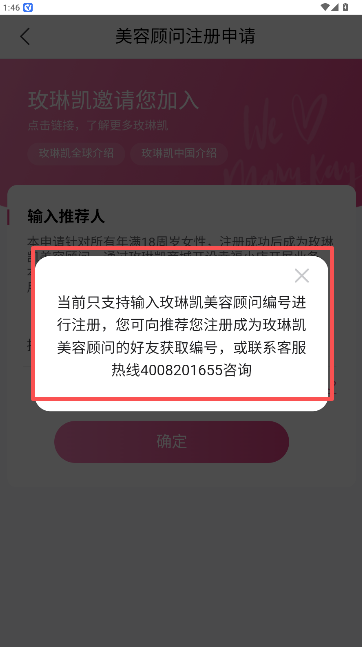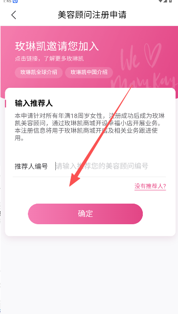 2、登录前,点击申请成为玫琳凯美容顾问,注册专属用户账户。