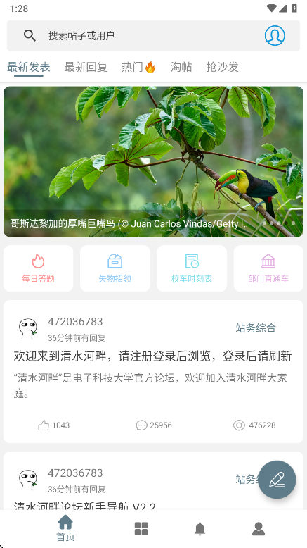 专门为电子科技大学学生们打造的日常交流互动论坛社区APP,类似早年间的贴吧,师生们可以在平台上发布各种趣事、或是提问等相关内容,支持图片、视频、文件等格式。