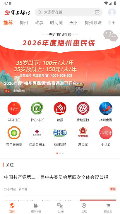 1、在本站下载安装掌上梅州app打开,进入到首页可以浏览到推荐的资讯动态