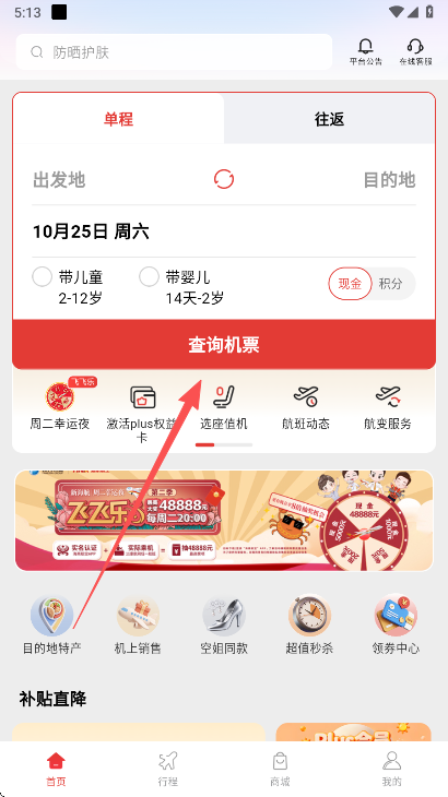 3、可选择单程机票、往返机票两种机票类型进行在线购买使用;