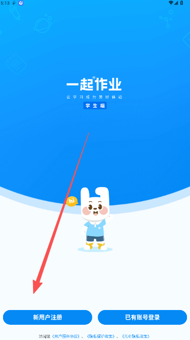 在您首次下载进入学生端界面时,点击【新用户注册】,输入老师告知您的手机号码或者老师账号注册加入班级。注册成功系统会为您生成3开头的学生账号,即可完成注册。