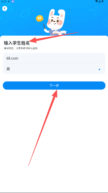 5、为了方便老师的管理,请输入学生用户姓名并选择性别,继续进行下一步的操作。