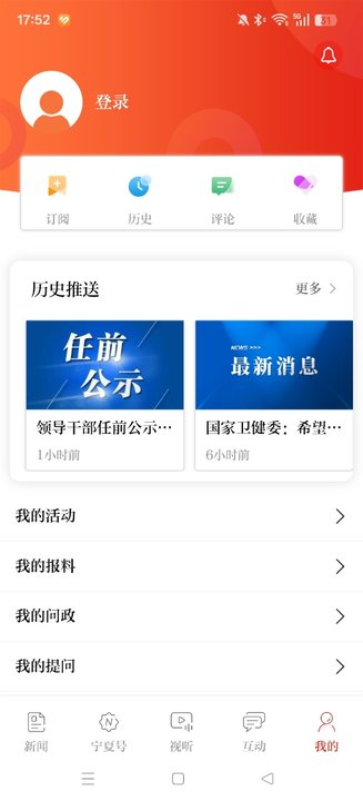 1、宁夏日报电子版直播内容发布集中在视听区,点击下方面栏目切换。