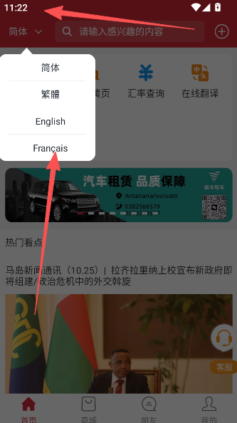 马达加斯加在线app马岛第一款综合性应用支付平台,提供实时新闻、生活工具及本地化服务,用户每日可在此了解最新关于马岛的新闻资讯部分,同时还能够利用它来学习马岛官方语言,增加自己的语言知识储备。