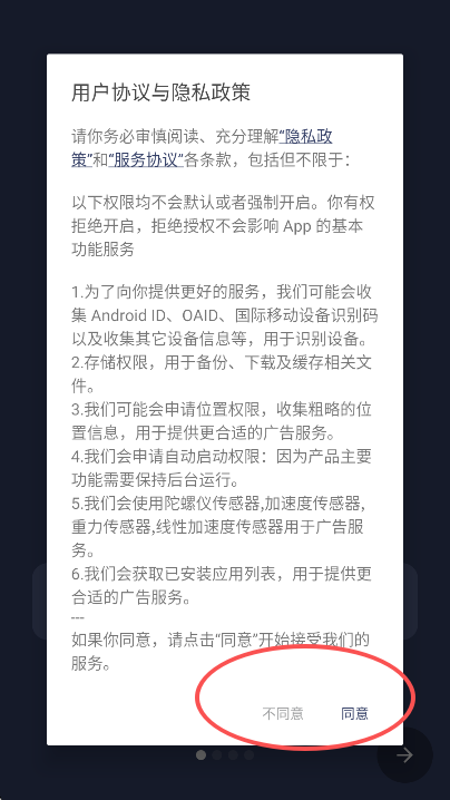 1、在本站下载安装app打开,同意贝利自动点击器app的用户协议