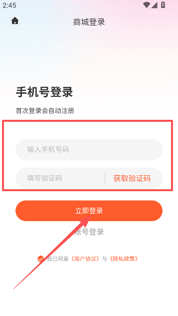 2、新用户首次登录即为注册,通过手机号码短信验证进入。